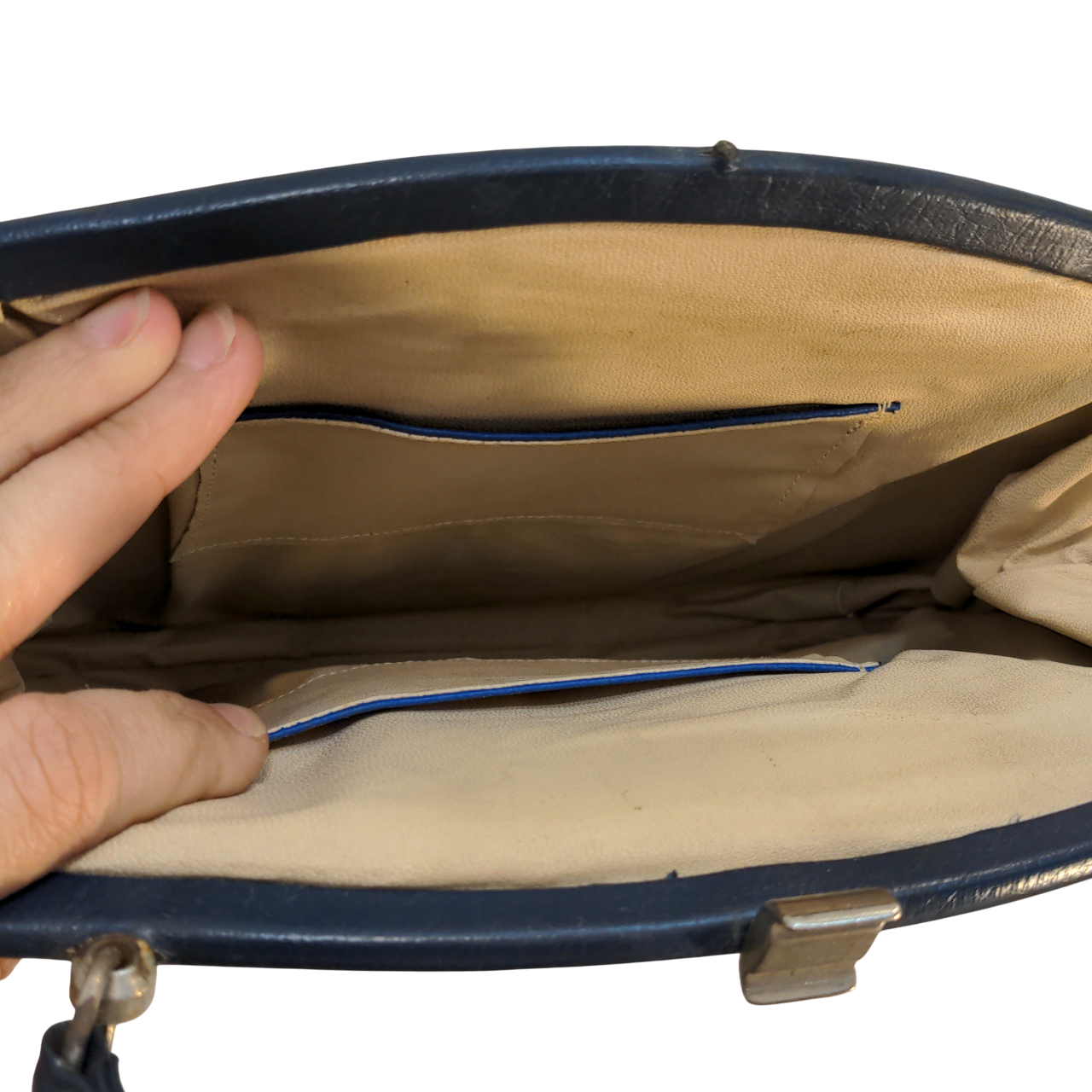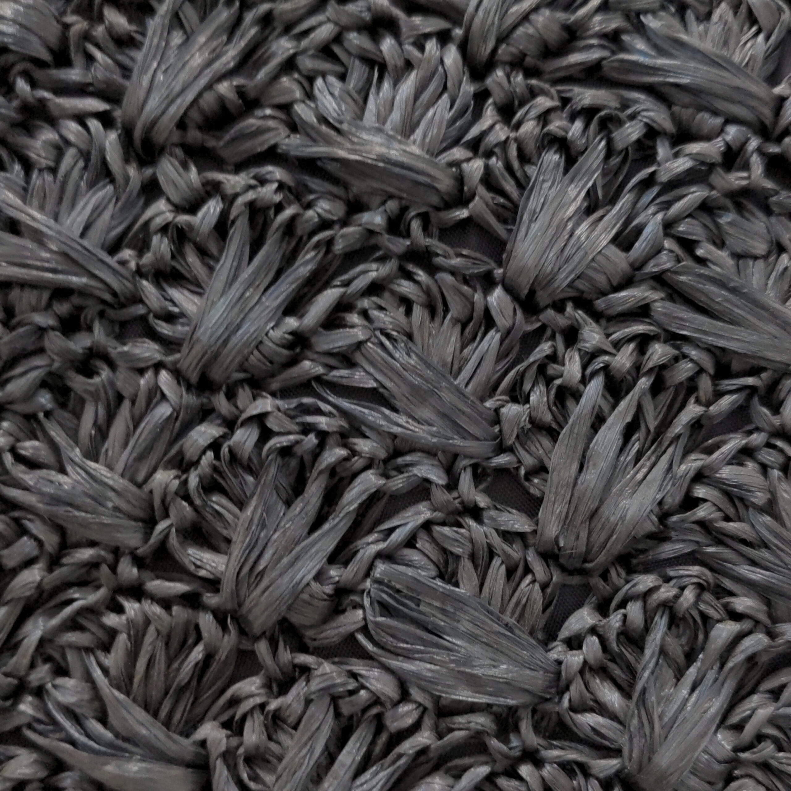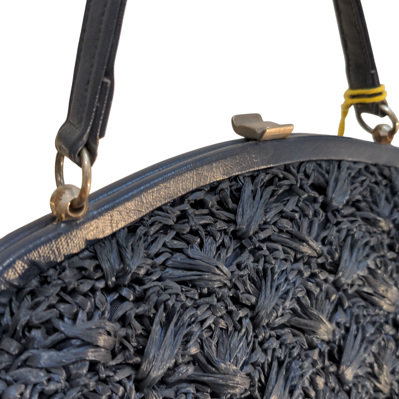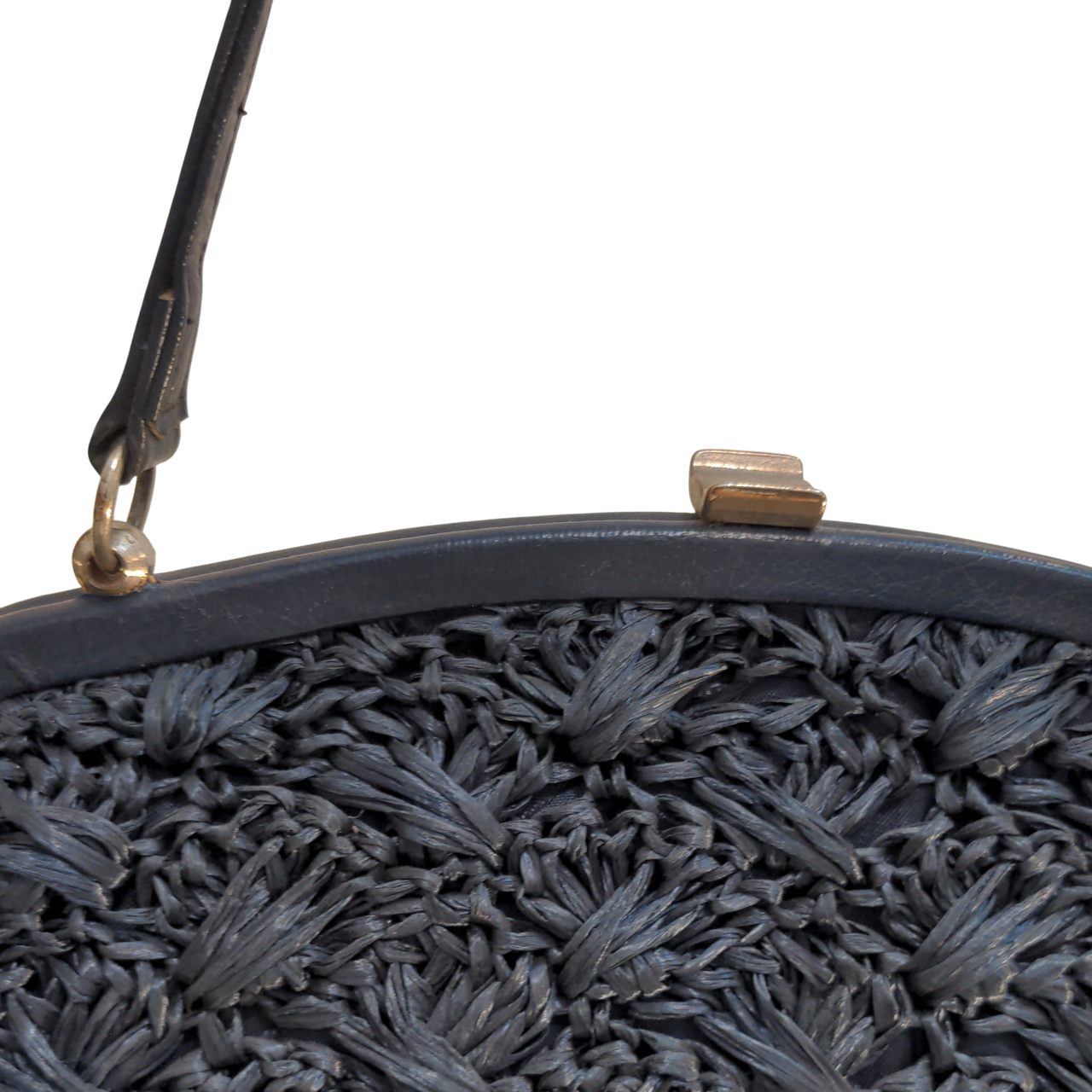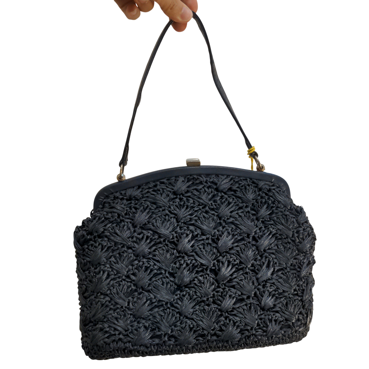 Cartera de rafia sintética negra. Interior de cuero. Tira de cuero.