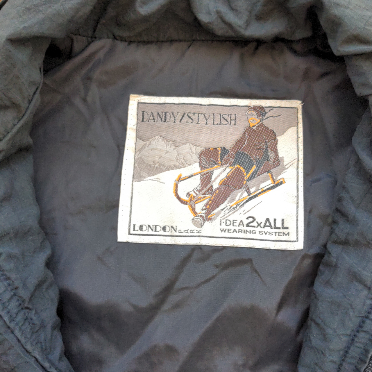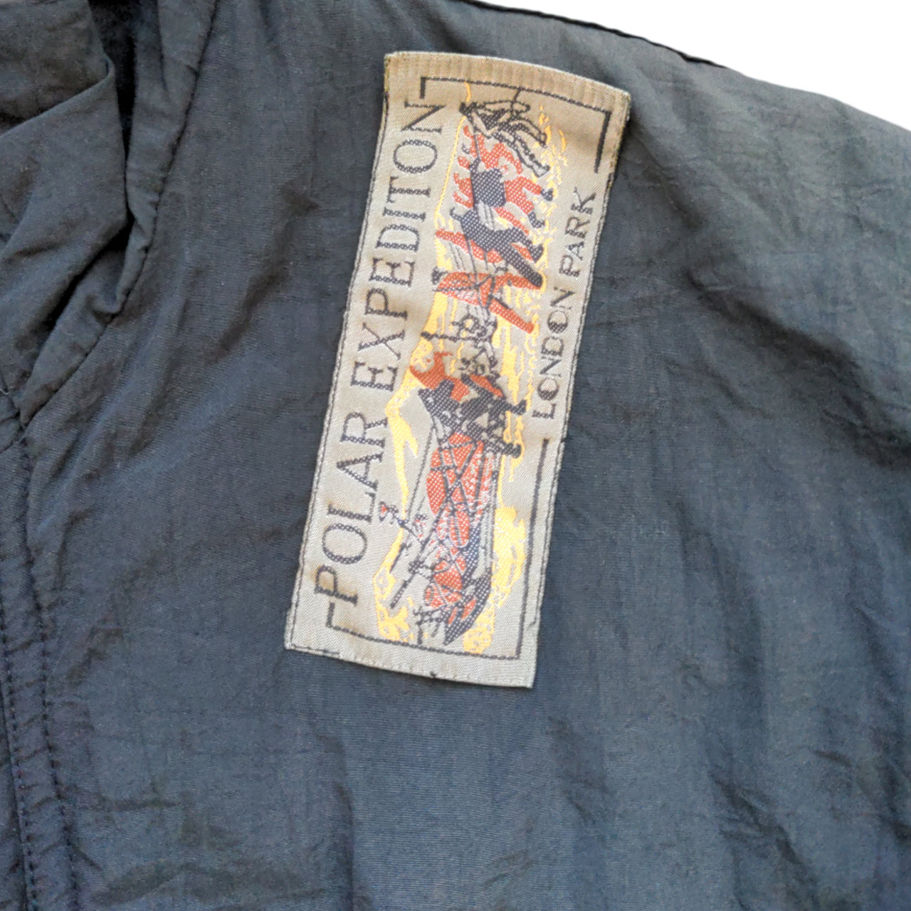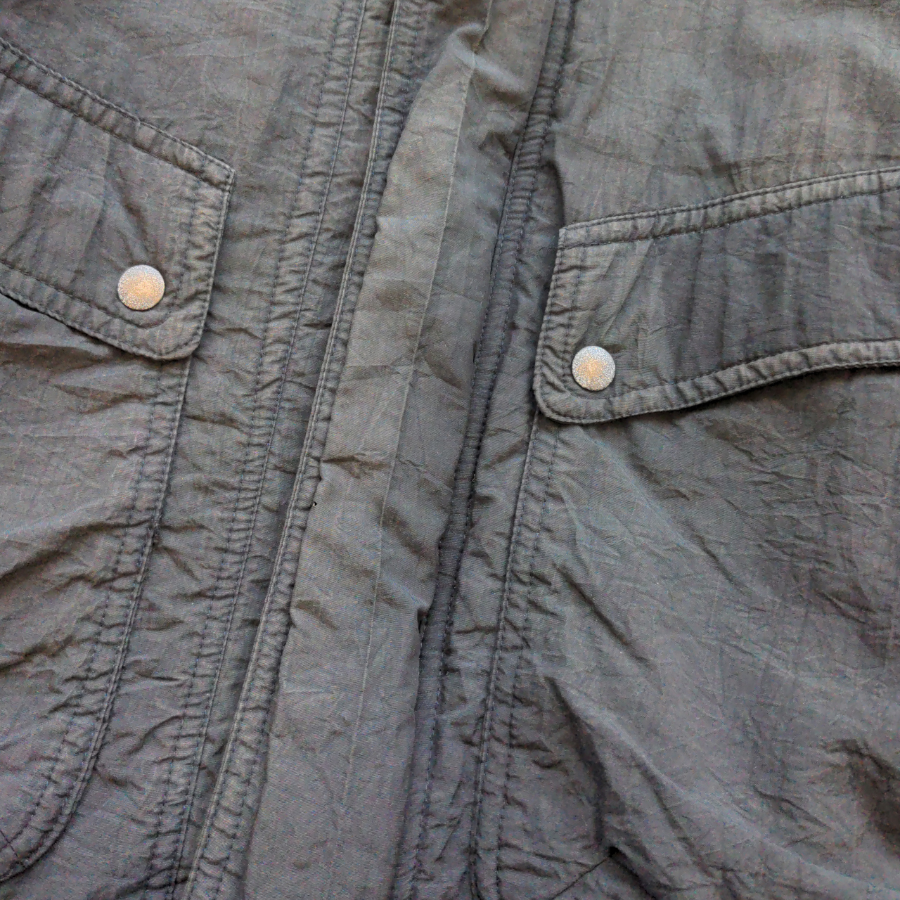 Campera de siré negra, con bolsillos delanteros con broches. Cierra al frente con cierre y broches.